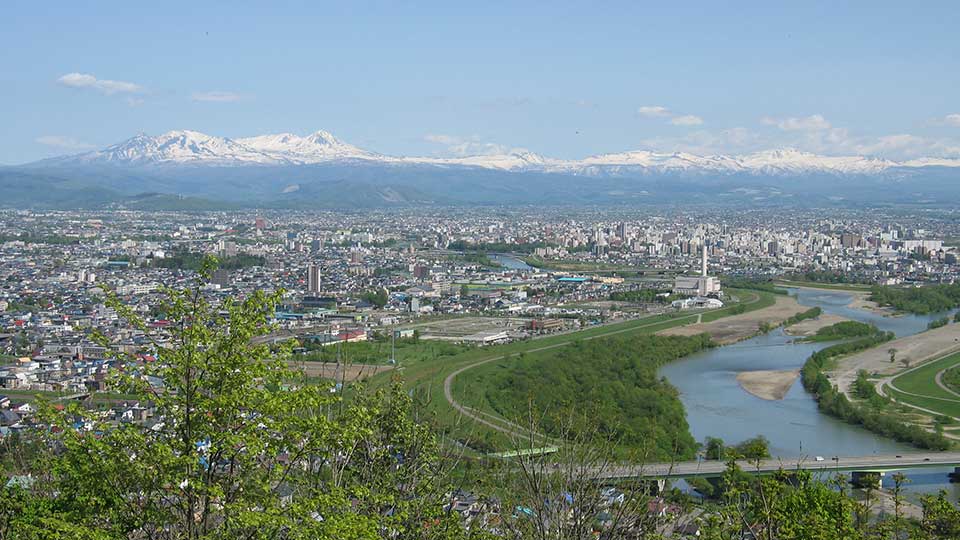 北海道の中央・上川地方のほぼ中央に位置する旭川市は、古くからのアイヌの人々の営みと開拓の歴史によって基礎が築かれて以来、交通の要衝・物流の集積地として発展してきました。大雪山・十勝岳連峰を望み、石狩川をはじめとする豊かな自然と、教育や医療、福祉、文化などの都市機能が調和した、北北海道の拠点都市です。